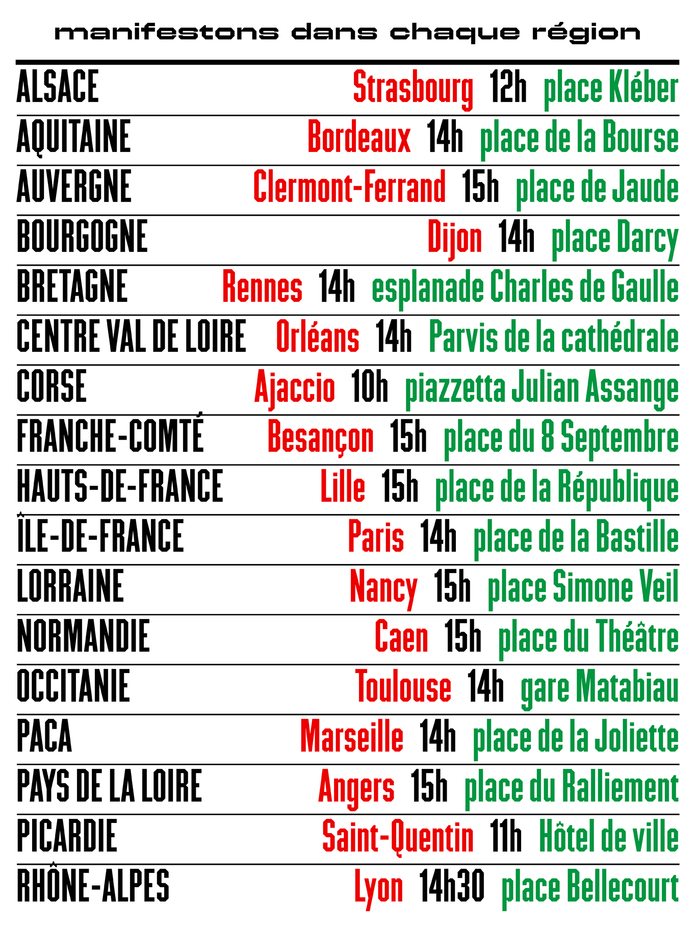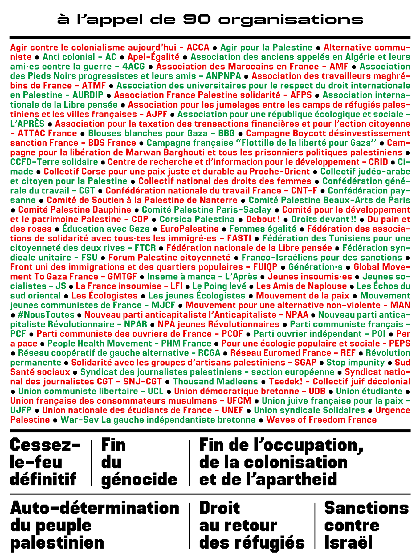 STOP AU GÉNOCIDE À GAZA Si les discours ont changé reste à changer les actes ! Des actions sont organisées dans plusieurs villes pour exiger que l'Etat français prenne des sanctions contre Israël maintenant ! Nous vous encourageons à y participer.