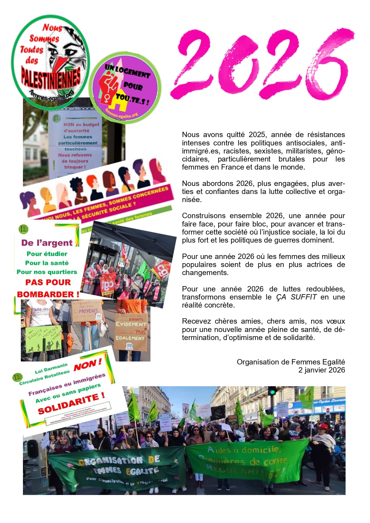 En ce début d’année 2025, toute l’équipe du comité national de Femmes Egalité vous présente ses meilleurs vœux. Santé, énergie et solidarité pour toutes et tous et merci pour votre engagement et soutien à nos actions. NOUS QUITTONS 2024...